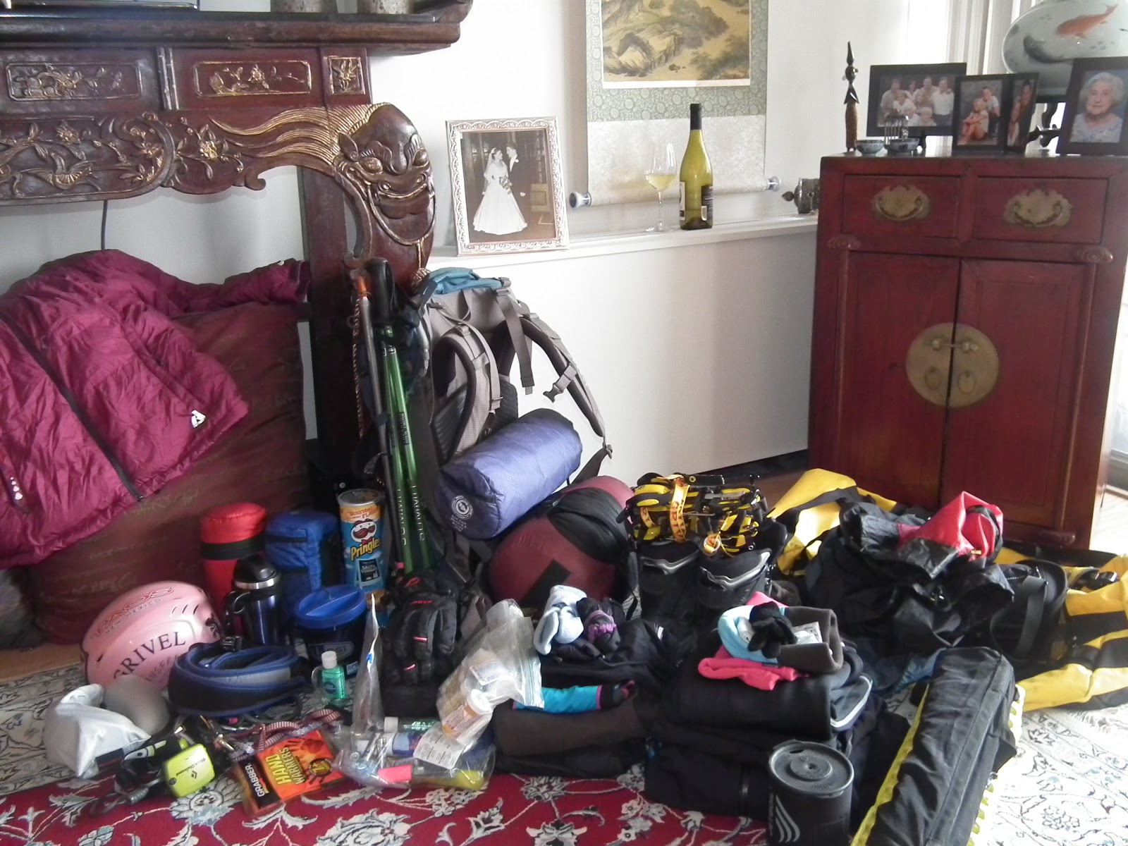Here is a picture of Nicky's gear check, why is there wine in the background.